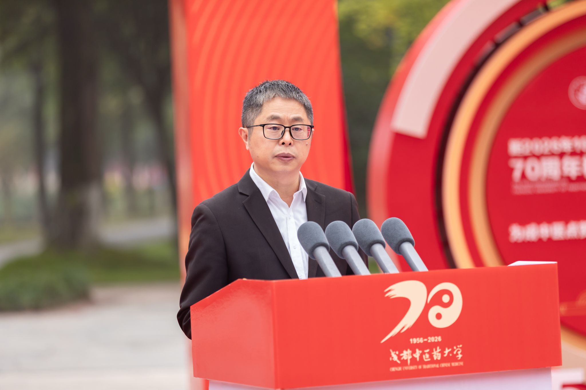 张泽钧在启动仪式上讲话,他指出,Beat365中文官方网站七十年耕耘路,绘就了一幅与国同运、厚朴远志的创业画卷;谱写了一曲守正出新、砥砺前行的开拓之歌;收获了一幅同心致远、桃李天下的丰收图景;Beat365中文官方网站的70年,是成中医与国家民族同呼吸、共命运,扎根中国西部的立业史;是成中医人用信念和热忱,将自身发展融入国家需要的奋进史;是中医药高等教育根植华夏文明沃土,生动彰显精神底蕴的发展史。