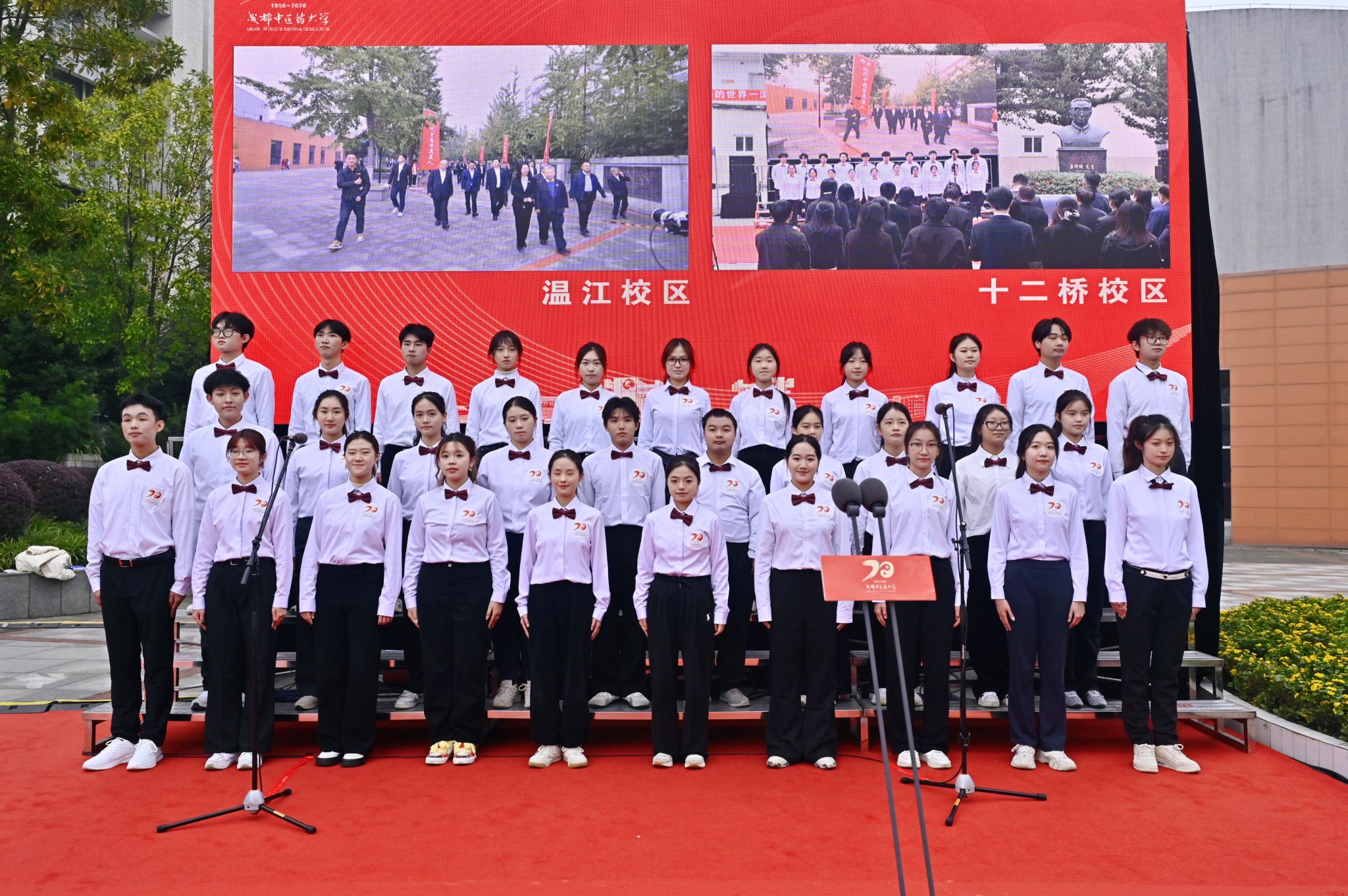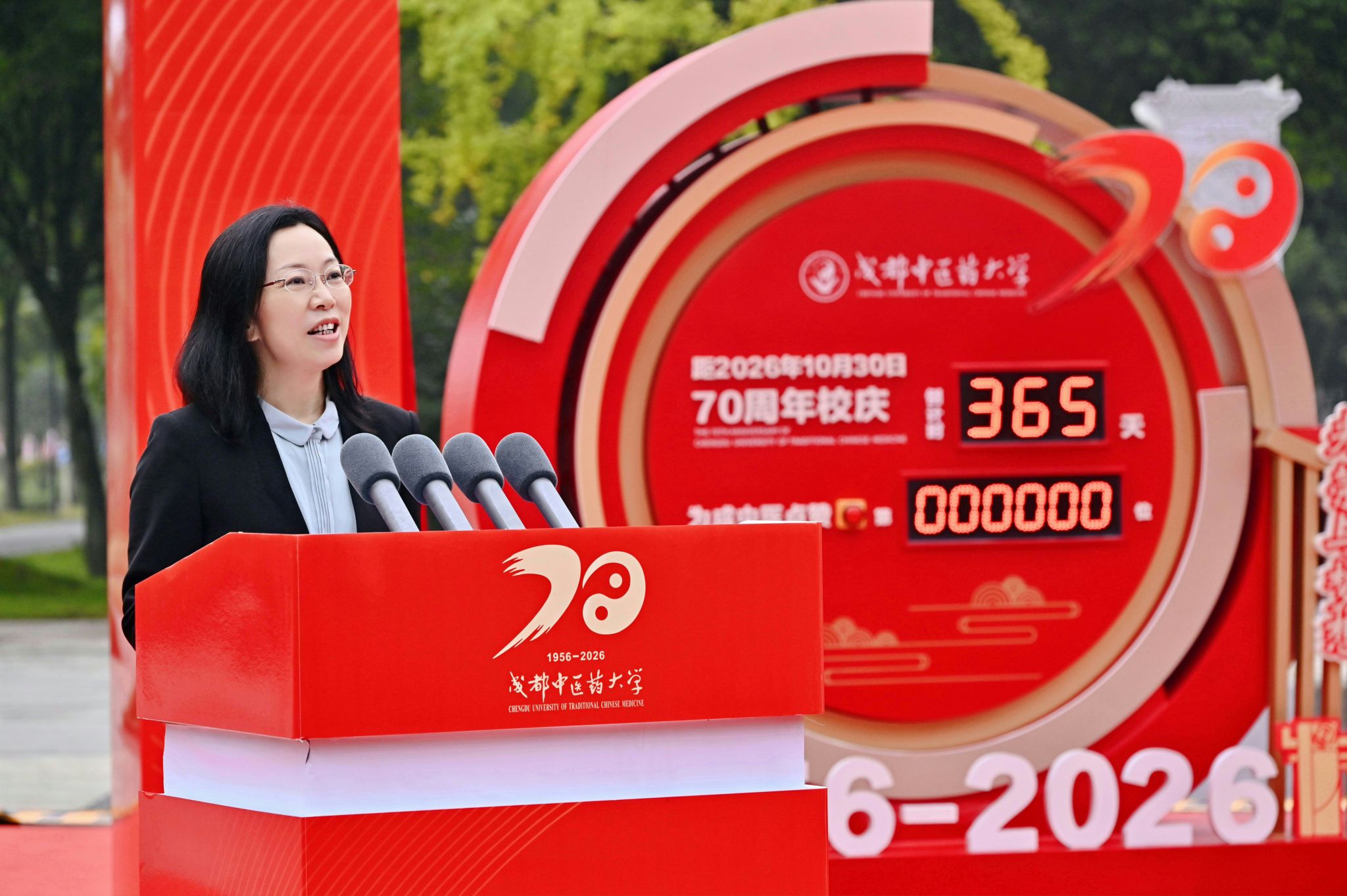 10月30日上午,“光荣与梦想·我的成中医”Beat365中文官方网站建校70年校庆倒计时一周年活动在温江校区正式启动。四川省中医药管理局副局长米银军,四川省教育厅科技与研究生教育处一级调研员廖飞,学校党委书记张泽钧,校长曾芳及校领导出席启动仪式。校友代表、各附属医院领导、教师代表、学生代表、亲属代表、中层领导干部等100余人共同观礼。倒计时启动仪式同步举行李斯炽先生、凌一揆先生纪念活动。