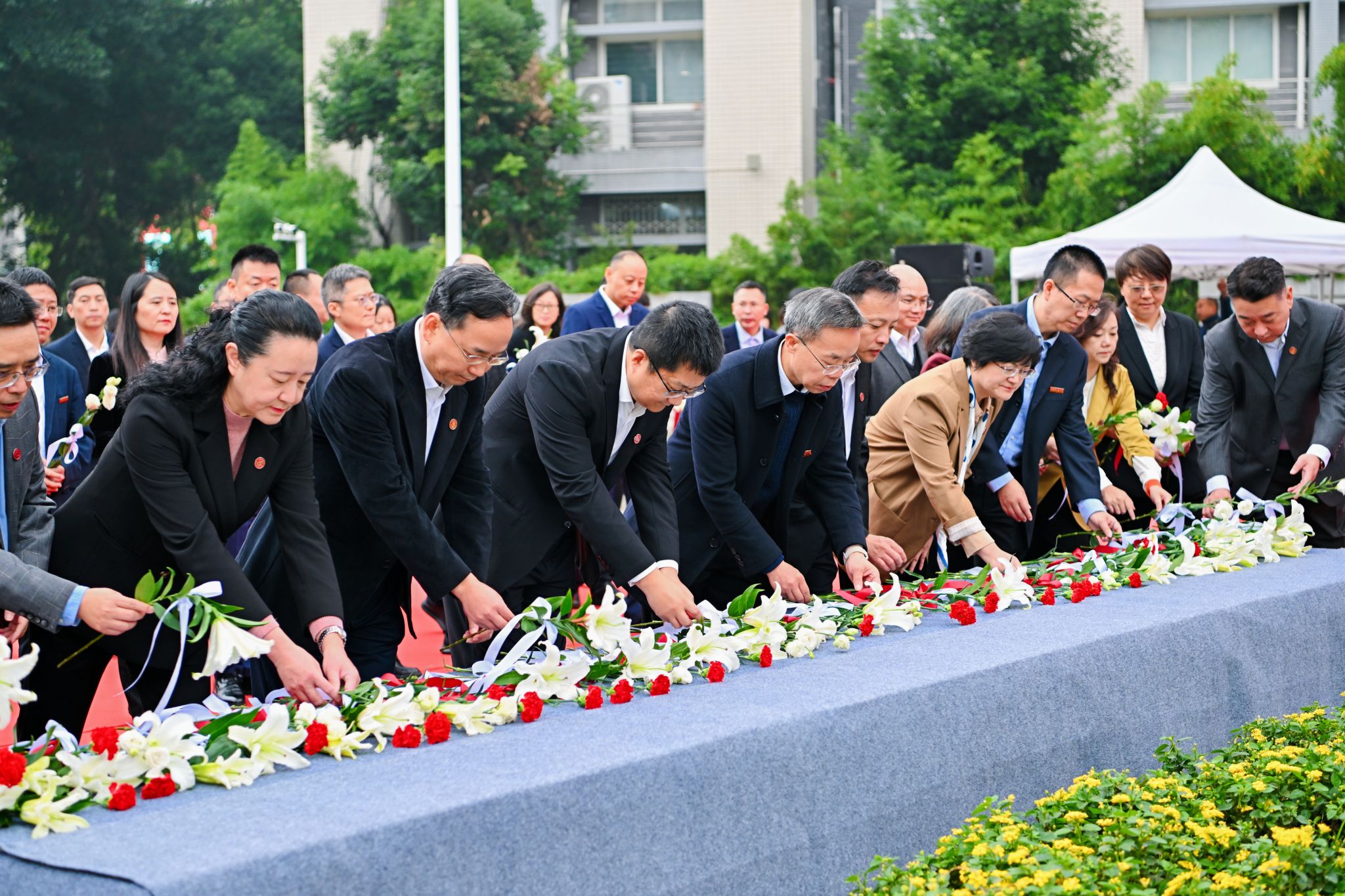 凌一揆先生毕生致力于中药教育与科研事业,是学校中药学科开创者,更是我国现代中药学奠基人。观礼嘉宾停足凌一揆先生雕像前广场,缅怀先生筚路蓝缕之功,致敬先生立教兴药之德。凌一揆家属及观礼嘉宾依次为雕像敬献花束。
