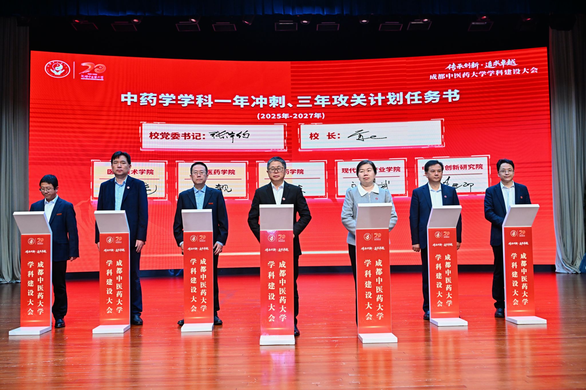 学校发布了中药学、中医学学科一年冲刺、三年攻关任务书,张泽钧书记、曾芳校长分别与中药学5个建设依托学院、研究院,中医学8个建设依托学院、医院的院长、书记代表签订了任务书。