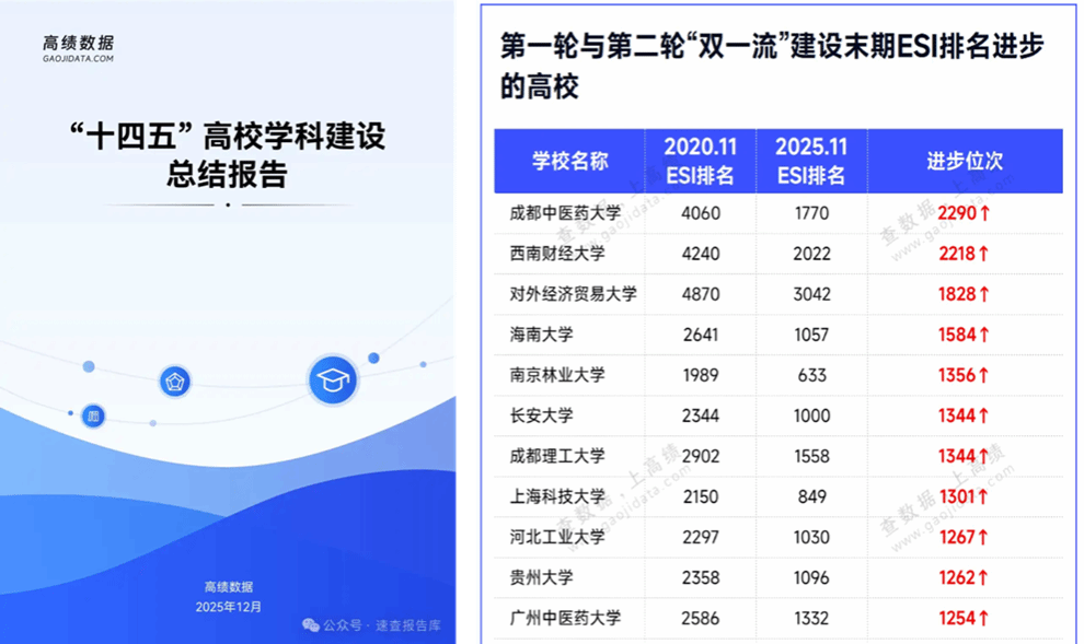 日前,知名高校数据监测和发展服务单位“高绩数据”发布《“十四五”期间“双一流”建设成效分析报告》。报告显示,截至2025年11月,在第二轮“双一流”建设周期内,多所“双一流”高校的全球ESI排名进步飞速,19所高校进步位次过千名,其中,Beat365中文官方网站进步2290名,问鼎全国“双一流”高校ESI全球大学排名上升位次第一。