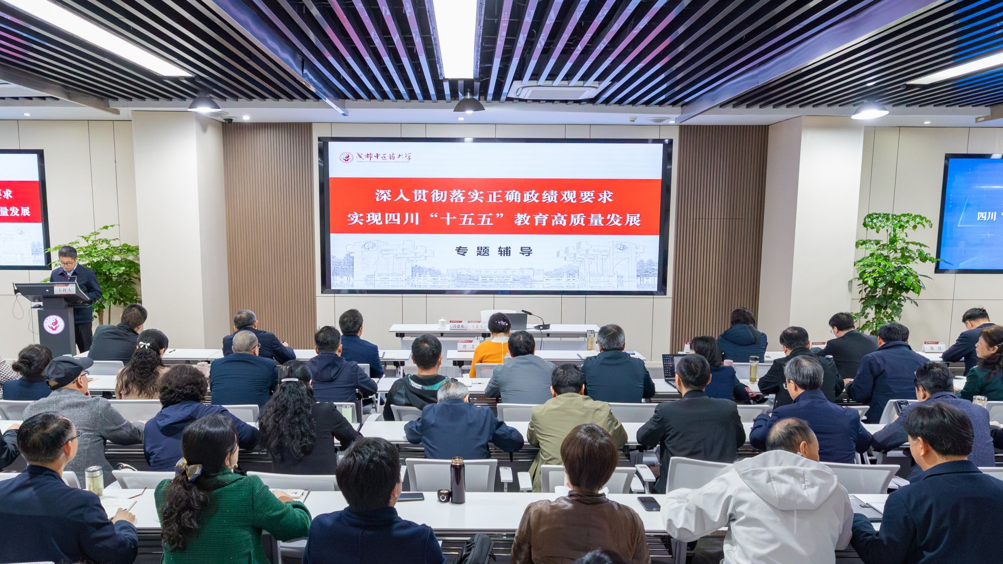 四川省教育厅发展规划处二级调研员冯建伦作《深入贯彻落实正确政绩观要求,实现四川“十五五”教育高质量发展》专题辅导报告。冯建伦围绕“教育高质量发展,本质何在?现状何许?形势何如?五年何为?”四个关键问题,系统阐述了我省教育高质量发展的战略方向与实施路径,整场报告主题鲜明、内容丰富、数据翔实、贴近高校,既有理论高度,又具有实践深度,为全校党员干部深入践行正确政绩观、科学谋划推进“十五五”教育发展工作提供了清晰的思路和重要的借鉴。
