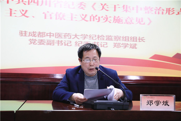 驻学校纪检监察组组长、党委副书记、纪委书记郑学斌介绍了中纪委印发的《关于贯彻落实习近平总书记重要指示精神集中整治形式主义、官僚主义的工作意见》、省纪委印发的《关于集中整治形式主义、官僚主义的实施意见》的主要内容和精神要求,并就学校开展集中整治形式主义、官僚主义工作作了全面部署,要求各部门要提高认识、加强领导、统筹推进、严格督查,深入查找问题,建立长效机制,扎实开展好集中整治形式主义、官僚主义工作。