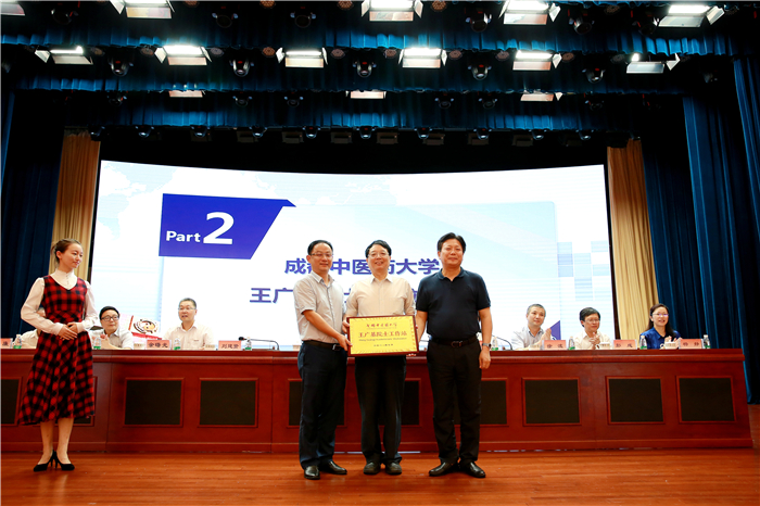 会议举行引进人才签约仪式,全职引进四川省百人计划和成都市人才计划引进人才、首届四川省杰出人才、成都特普生物科技股份有限公司董事长黄永教授。副校长杨静代表学校与黄永教授签署全职引进人才协议,为黄永佩戴校徽,并向黄永授“天然药物应用与代谢调控研究院”铭牌。