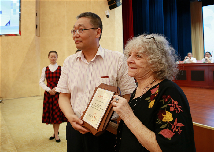 会议聘任阿达•约纳特为学校名誉教授。校长余曙光为阿达教授颁发聘书,赠送礼品。