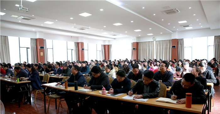 为学习宣传贯彻好党的十九大精神,真正把思想和行动统一到党的十九大精神上来,2月28日,新学期开学前一天,学校党委在十二桥校区图书馆报告厅举办科级以上干部深入学习贯彻党的十九大精神培训班。培训由学校党委书记刘毅主持。校领导、全校230多名处科级干部参加学习。