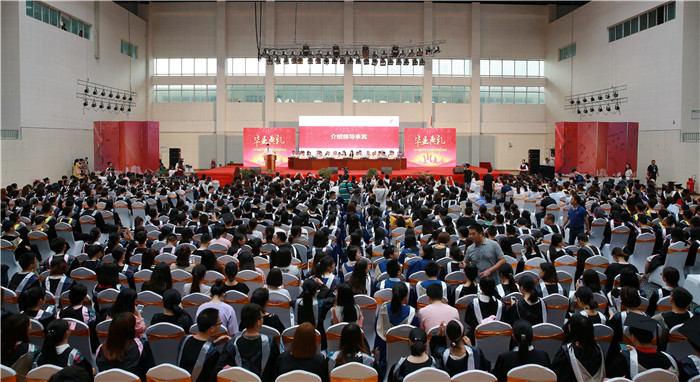 此次毕业典礼首次将会场移到体育馆举行,以容纳更多毕业生到现场感受学校对他们的祝福和期盼。整场典礼庄重大气、情感热烈、感人至深,其间穿插播放了《优秀毕业生感言》《教师祝福》《辅导员祝福》《后勤保安员工祝福》和《校友代表祝福》等视频短片,温馨感人;设置了微信留言墙,通过现场大屏幕将同学们的心声与祝福进行即时展示。体育馆外也设置了留言展板供大家签名纪念。