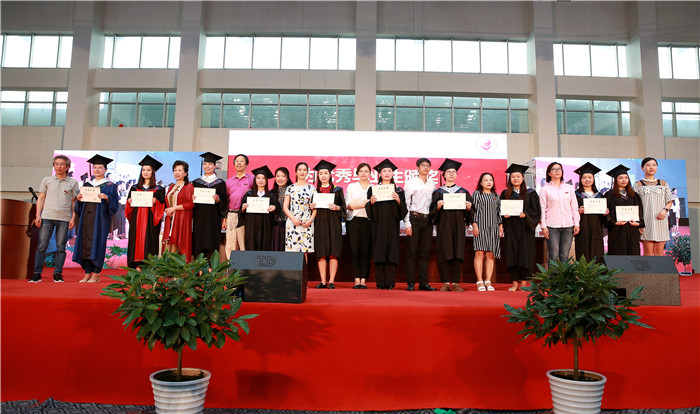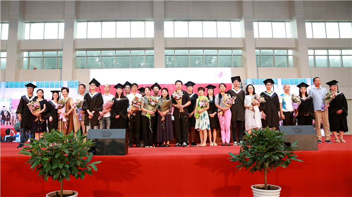 12名教师代表、13名辅导员代表和10名后勤、保安员工代表分别登台,接受毕业生代表的献花,接受同学们对他们精心育人、辛勤服务的感谢。