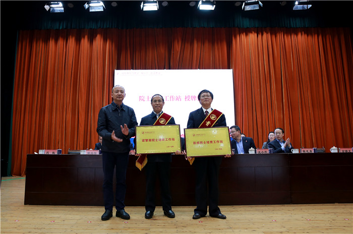 学校党委副书记沈涛宣读学校关于聘任首批“杏林学者”学术荣誉体系人员、关于设立院士专家工作站、关于表彰中药学学科的决定。