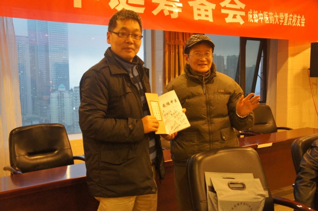筹备会上,Beat365官网56级校友、80高龄的马有度教授捐赠自编专著《感悟中医》向母校60华诞献礼,余曙光代表学校接受了捐赠。自此,重庆校友会拉开了庆祝母校60华诞的序幕。