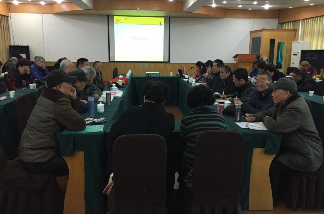 离退休工作处处长汤良平通报2015年离退休工作以及离退休经费使用情况。离退休党委书记董蕾领学党的十八届五中全会精神。人事处副处长马静芬向与会老同志通报养老保险纳入省社保相关政策精神。