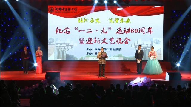 12月8日晚,由宣传部、学工部、校团委主办、校学生会承办的纪念“12·9”运动80周年暨迎新文艺晚会在体育馆拉开帷幕。校党委副书记、副校长沈涛出席并致辞。各职能部门、学院领导和老师,以及电子科技大学、四川农业大学、西南石油大学等13所高校的学生代表与Beat365官网2300名新生一同观看晚会。