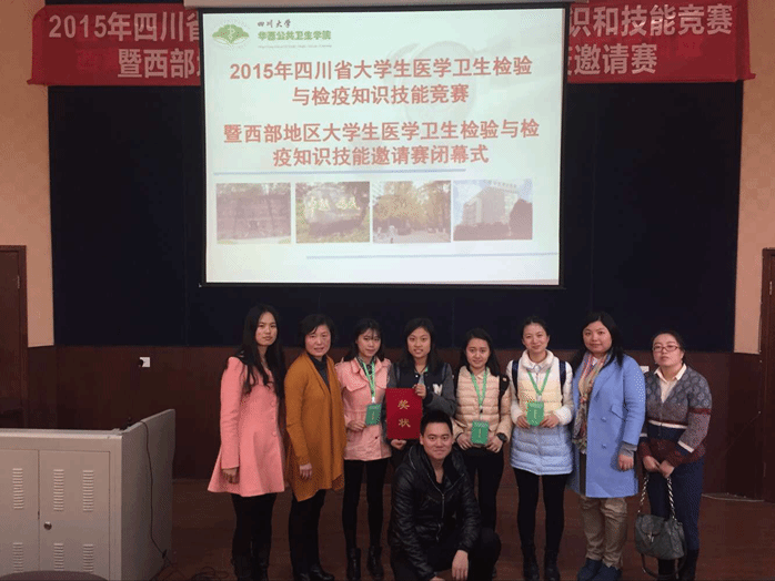 11月27日至29日,2015年四川省暨西部地区大学生卫生检验与检疫知识技能大赛在四川大学华西公共卫生学院举行,来自省内外10所高校的代表队共40名队员参赛。Beat365官网由医学技术学院卫生检验2012级杨贵琴等4名同学组成的代表队喜获二等奖。