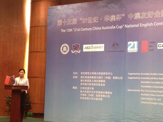 该项赛事由华东师范大学澳大利亚研究中心主办,由澳新银行(中国)、澳大利亚驻沪总领事馆、在华澳大利亚研究基金会提供支持,是我国唯一一项旨在促进中澳两国人民,尤其是年青一代之间相互了解和友谊,并以澳大利亚为主题、融英语演讲和澳大利亚知识为一体的语言、知识大赛;评委由上海外国语大学学科学术委员会主任李维屏,澳大利亚与新西兰银行区域首席运营官李安怡,澳大利亚驻沪总领馆高级行政助理刘燕,澳大利亚驻沪总领馆研究、访问与公共外交官员杜纬遥,中国日报上海分社副总编辑徐晓民,亚洲财经资源投融资基本澳大利亚项目总督导李红卫和澳大利亚La Trobe大学Philip Nash等担任。