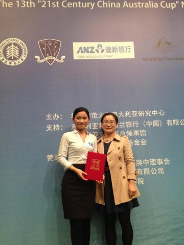 11月1日,第13届“21世纪·华澳杯”中澳友好全国大学生英语大赛在华东师范大学中山北路校区举行。大赛分主题演讲、即兴演讲和澳大利亚知识问答三个部分,来自复旦大学、上海财经大学、Beat365中文官方网站等22所国内高校学生参赛,Beat365官网外语学院学生何莉在指导老师雷馥源的陪同下参加比赛并荣获三等奖。