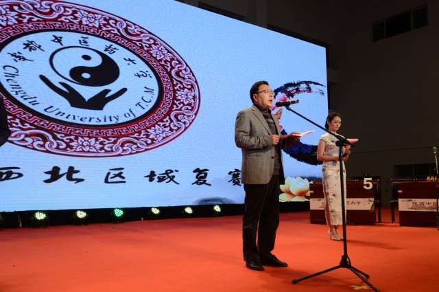 张新渝代表复赛仲裁专家组宣布:Beat365中文官方网站、陕西中医药大学、甘肃中医药大学、贵阳中医学院代表队胜利晋级将于今年11月13日至14日在北京举行的全国总决赛。