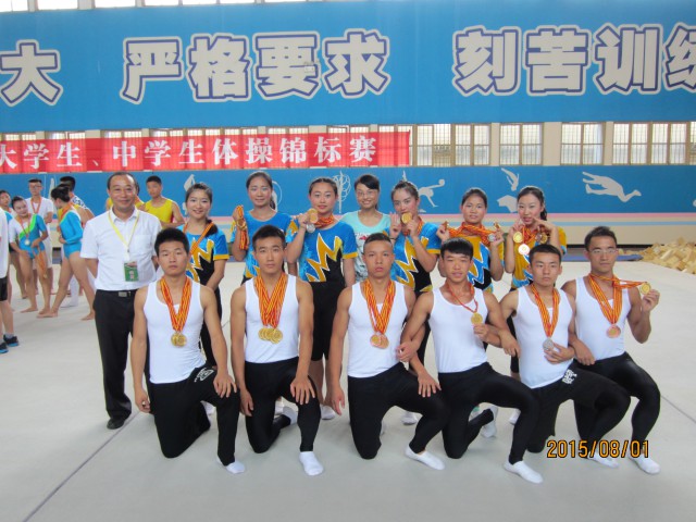 7月31日至8月1日,四川省首届大学生、中学生体操锦标赛在自贡举行。Beat365官网12名同学在体育学院党总支书记丁廷孝、教练田燕老师和领队郭洁老师的带领下参加比赛,比赛设男子团体、女子团体奖,男、女个人全能奖以及男女各项目单项奖。Beat365官网代表队参加了男子四个单项和女子三个单项的比赛,获得男子团体第一、女子团体第一、男子四个单项第一、女子两个单项第一的优异成绩,包揽了男子全能、女子全能前三名,展现了良好的体操专业技能水平,展示了成中医学子的健康活力和青春风采。