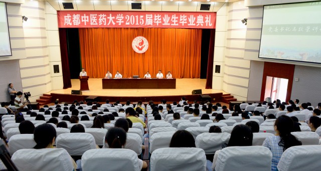 6月24日上午,2015届毕业生毕业典礼在温江校区百会堂举行。校领导马跃荣、梁繁荣、沈涛、安劬、余曙光、彭成出席典礼,各学院院长、党委书记和有关职能部门负责人,以及2015届毕业生代表和毕业生家长代表参加典礼。党委副书记、副校长沈涛主持典礼。