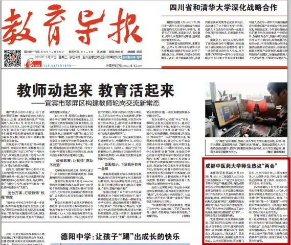 本报讯(记者李益众)3 月3 日到3月15日,十二届全国人大三次会议和全国政协十二届三次会议(以下简称“两会”)隆重召开。身处Beat365中文官方网站校园的师生也时刻关注着两会的进程,从李克强总理的政府工作报告到人大代表和政协委员的议案、提案,老师和同学通过不同的形式关注着“两会”,校园里到处充满着对“两会”探讨和思考的氛围,“两会”的各种热点话题也成了成中医师生课前课后要摆的“龙门阵”,一股两会风正在校园里吹拂。