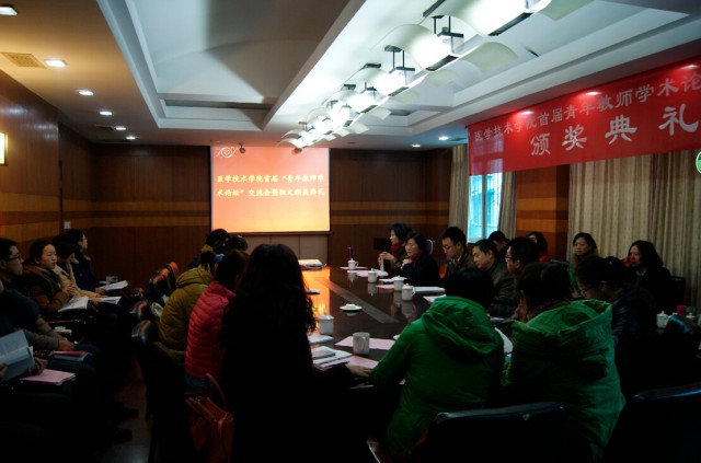12月18日,医学技术学院举行首届“青年教师学术论坛”交流会暨征文颁奖典礼,人事处、科技处及学院领导、教研室主任、全院青年教师40余人参加大会。