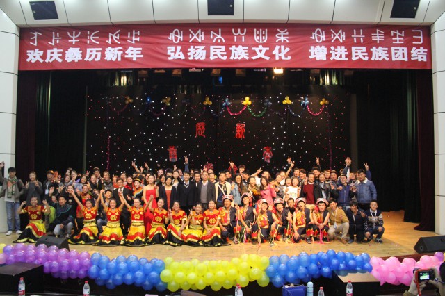 11月28日晚,由医学技术学院承办、主题为“喜庆彝历新年、弘扬民族文化、增进民族团结”的2014年彝历新年晚会在百会堂举行,党委宣传部、校团委、医学技术学院等部门和学院相关领导、老师到晚会现场观看演出,向全校彝族同学致以节日的问候,希望各族同学团结友善、互助互爱,牢固树立“汉族离不开少数民族,少数民族离不开汉族,各少数民族之间也互相离不开”“三个离不开”的意识,强化“对祖国的认同,对中华民族的认同,对中华文化的认同,对中国特色社会主义道路认同”“四个认同”,强化道路自信、理论自信、制度自信,通过自身的努力改变自己、提升自我,让自己的家庭、班级、学院、学校乃至民族和国家因自己的存在而受益无穷,因自己的精彩而无上光荣。