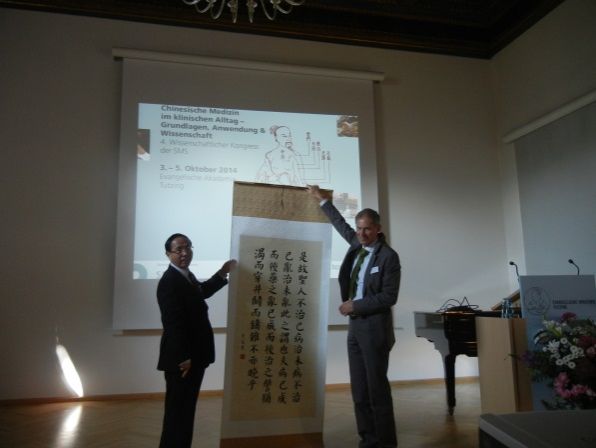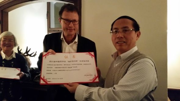 代表团一行还参观了德国传统中医诊所,与德国自然疗法医生进行了病案讨论;梁繁荣还向Josef博士颁发了《糖尿病的中医治疗》四川省中医药学会“绿叶光杯”科学技术奖,以表彰他在成果国际推广应用中所作贡献。