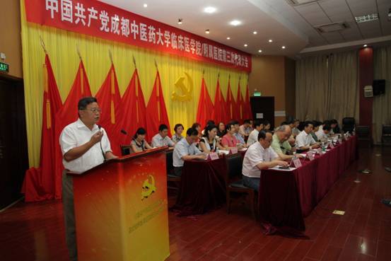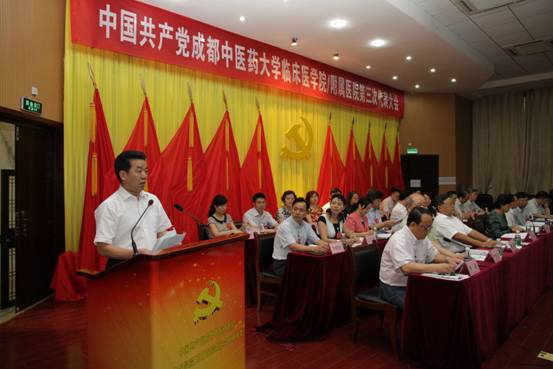 学校党委书记马跃荣、校长梁繁荣,省卫计委党组成员、机关党委书记冉茂琴,省中医药管理局党组成员、机关党委书记罗建,院党委书记段俊国,院长钟森,党委副书记谭生奎、田理,副院长谢春光、张勤修、蒋运兰以及党代会正式党代表、列席代表、特邀嘉宾,省中医药科学院、省骨科医院、省中西医结合医院、省第二中医医院、绵阳市中医医院,学校党委组织部、基础医学院、药学院、针灸推拿学院/第三附属医院、护理学院、第二临床医学院/第二附属医院党委负责人等190余人参加大会。大会开幕式由钟森主持。省中医药科学院、泸州医学院附属中医医院发来贺电,对大会的召开表示热烈祝贺。