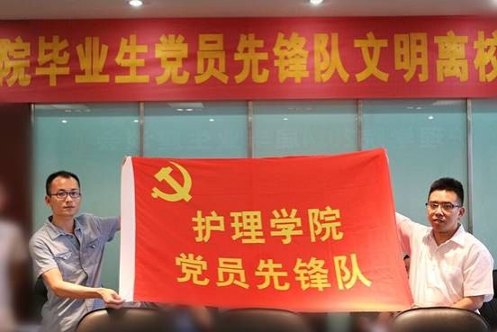会上,学院领导为毕业班联络员颁发院友联络证书,并向毕业生党员先锋队授旗。党员先锋队文明离校活动是护理学院毕业生特色或者之一,包括文明离校倡议、寝室安全卫生检查及“党员奉献日”等系列活动。