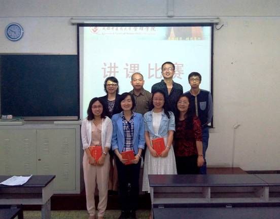 5月22日,学院举行2014年青年教师讲课比赛,共有8名青年教师参赛,学校教务处王飞处长到场指导,全院40岁以下青年教室参与学习观摩,心理学教研室李芸老师夺得第一名,公共事业管理教研室魏继平、旅游学教研室刘小滨分获第二名和第三名。