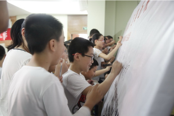 在启动仪式上,出席活动的领导及嘉宾向小学生赠送了视力保护科普光盘,并一道在“科学用眼,远离近视”签名墙上书写寄语。