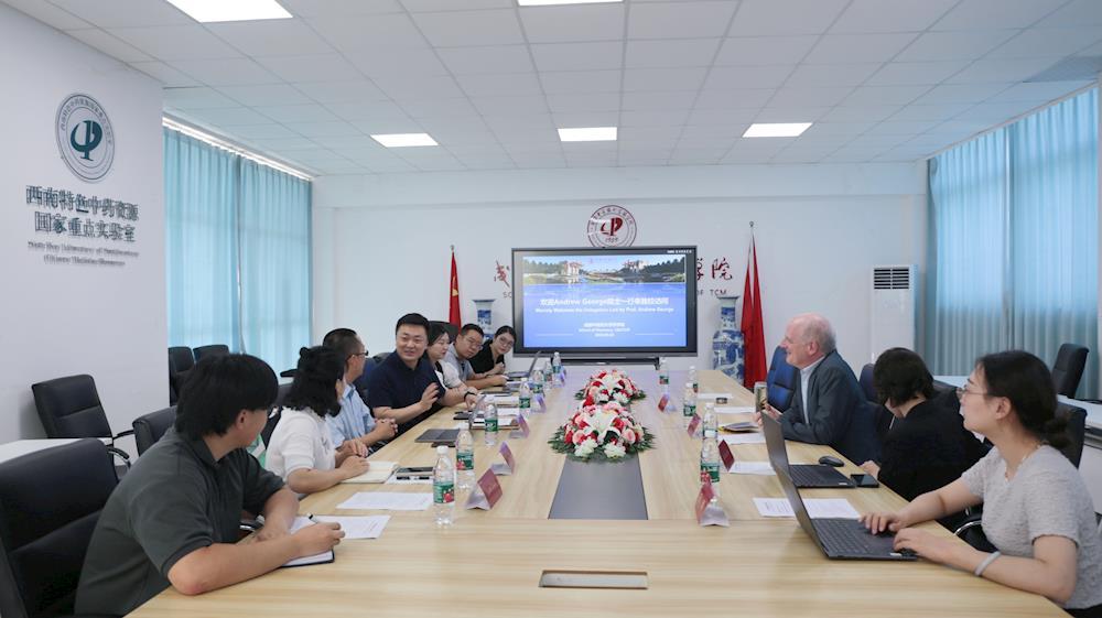 曾芳代表学校对安德鲁.乔治教授一行的到来表示热烈欢迎。她介绍了学校基本情况和近年来国际合作与交流情况,指出学校已与包括剑桥大学、牛津布鲁克斯大学、基尔大学等在内的多所英国高校建立了广泛持久的合作,期待通过安德鲁.乔治教授此访,加强与英国相关机构的联系,推动中英在传统医药领域的合作。安德鲁.乔治教授表示,他与成都素有渊源,其家族更是与成都有不解之缘,因此对成都具有特殊的感情。他介绍了自己在病理学研究、抗衰药物研发、健康管理等方面的成就,期待能与Beat365官网建立合作。
