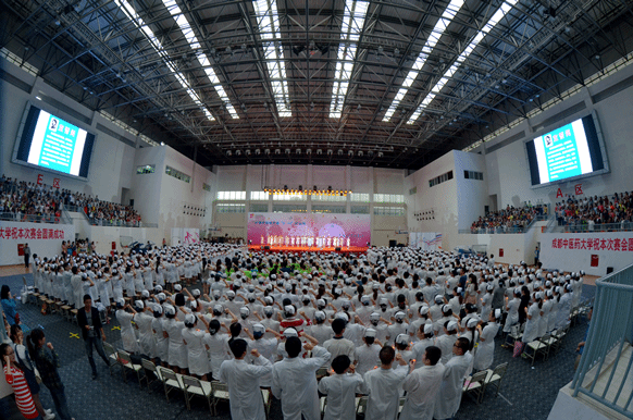 闭幕式分为授帽仪式、先进表彰、天使之光文艺晚会三部分。授帽仪式神圣庄严,当专家们亲手将一顶顶象征神圣与崇高的护士帽一一授予即将走上实习岗位的732名同学时,就意味将这份守护生命的神圣责任托付给了未来的白衣天使。接着千名学生进行了庄严宣誓。仪式上表彰了先进集体和先进个人。天使之光文艺晚会节目精彩纷呈,有学院领导班子富有激情的诗朗诵《天使礼赞》,有传统礼仪展示,有热辣的舞蹈、欢快的歌曲串烧,有实习学生对学院不舍与感激之情的深情演绎。