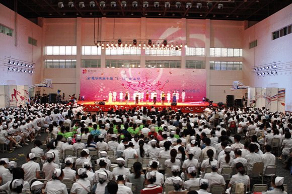 5月11日晚,护理学院第十届“5·12”护士节闭幕式暨“天使之光”文艺晚会在体育馆举行。副校长刘旭光出席闭幕式并讲话。刘旭光对护理学院十届“5·12”护士节成功举办表示热烈祝贺,并向师生致以节日的祝福。他指出,此次护士节活动创新形式、丰富内涵、完善细节、提高质量、突出特色,充分展示了学院“立德、仁爱、业精、创新”的良好风貌;护士节系列活动为同学们全面发展、自我展示、自我提升搭建了平台,希望同学们以此为新起点,认真学习护理专业知识、传承护理文化,在南丁格尔“人道、博爱和无私奉献”的精神中收获与成长。