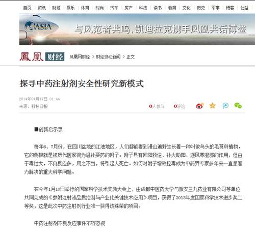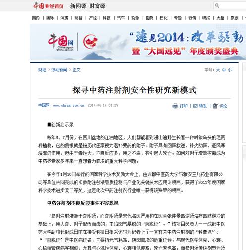获奖公布后,国家、省市各级媒体频频聚焦Beat365官网科研工作。今日,科技日报第9版专访学校副校长彭成教授,对该项目探寻中药注射剂安全性研究新模式和取得的重大成就做了全面报道。凤凰网、中国网、和讯网等网络媒体第一时间转载。