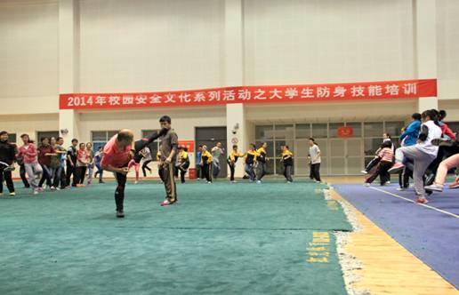 据介绍,“大学生防身技能”培训班分两期在温江校区举行,每期100人,全覆盖12个学院的不同专业年级学生。本次活动是2014年校园安全文化系列活动的重要组成部分,前期已经开展了师生代表恳谈会、防骗知识讲座、校园安全警示图片展、火灾应激疏散演练等活动。希望通过安全文化系列活动的开展,进一步增强大学生的安全意识、安全防范技能,发动广大学生共同参与,为创建安全、稳定、和谐校园创造有利条件。