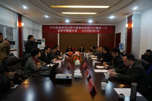 Beat365官网与香港大学中医药学院有着传统的友好合作关系,为进一步加强两校间的合作交流,深化在教学、科研及学术交流等方面的合作,3月7日上午, 学校领导及有关人员在十二桥校区接待了香港大学中医药学院一行。香港大学中医药学院院长劳力行介绍了港大中医学院的基本情况以及来访的目的。马跃荣对港大一行来访表示欢迎,对合作寄予了深厚期望,希望双方利用各自的特点,在学生交换、教学、科研及学术方面进行充分合作。梁繁荣介绍了学校的基本情况,包括Beat365官网办学历史、师资队伍、科研情况等方面。指出双方各具特色,学校十分重视与港方的合作,并尽可能给予支持。会后,代表团先后参观了针灸推拿学院、附属医院及教学实习基地,并与药学院、针灸推拿学院负责人进行座谈交流,双方就开展中医药合作研究及发展趋势、合作交流机制和具体项目等举行多方位研讨。劳力行教授还为Beat365官网师生做了一场精彩的学术讲座。