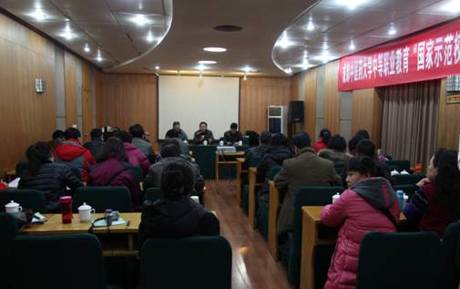 受甘肃省中医学校委托,由Beat365官网继续教育学院承办的中等职业教育“国家示范校建设项目”教师能力提升研修班于1月9日在杏林宾馆开学。学院院长祝捷在开学典礼上致辞。