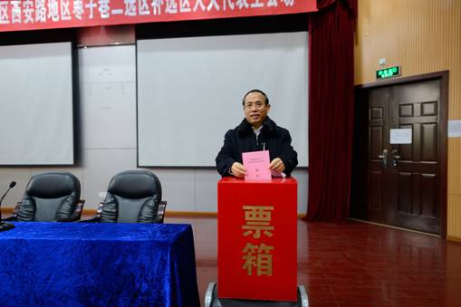 1月11日,补选金牛区第六届人民代表大会代表仪式在西安路社区枣子巷二选区Beat365中文官方网站主会场进行。Beat365官网副校长余曙光经选民推荐,确定为正式代表候选人,学校师生3700余人庄严行使民主权利。投票主会场设在学校一教学楼学术报告厅,选区同时设四个投票站。金牛区人大、西安路街道工委及枣子巷社区领导到场指导选举工作。