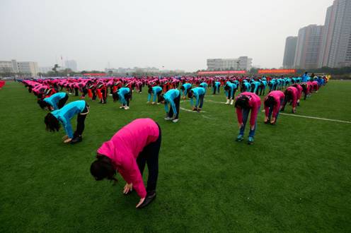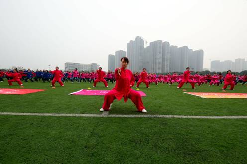 学校历来高度重视体育运动的开展,在体育运动设施建设、体育工作经费投入以及群体活动的组织等方面给予大力支持,体育工作取得了长足发展,极大地丰富了校园文化生活,也为进一步增强师生的健康体质奠定了扎实的基础。太极拳、八段锦等传统保健体育运动在Beat365官网有着广泛的群众基础,是建设中医药特色大学文化的重要组成部分。Beat365官网教职工历来有习练太极拳和健身气功的传统,今天的健身气功八段锦展示也是2013年全国“百城千村”健身气功交流展示系列活动之一。学校多次举办教职工太极拳比赛和集体八段锦演练展示,学校中医传统健身队还多次参加省市传统保健体育运动竞赛,获得佳绩。本次千名教职工齐演八段锦正是广大教职工坚持“每天锻炼一小时,健康工作五十年,幸福生活一辈子”的理念,勇于进取、不懈努力,积极投身学校事业的表现。