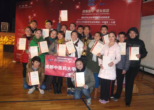 12月20日,由北京市联合国教科文组织协会、IDSU国际运动舞蹈联盟主办的2013年国际学生运动舞蹈(中国区)大赛在成都信息工程学院隆重展开。来自首都体育大学、江西师范大学、成都体育学院研究生院、西华大学、西南石油大学、武汉商学院、华中科技大学、四川师范大学等78个参赛单位的2613人参加大赛。经过三天的激烈角逐,由邓建华老师、郑贞老师带领的Beat365官网体育舞蹈代表队在比赛中脱颖而出,获得五金两银一铜的好成绩,为学校争得荣誉。