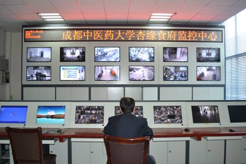 学校各级领导历来高度重视学生食堂的食品安全工作。2012年,饮食服务中心在按照示范性标准化学生食堂的规范要求筹建杏缘食府的时候,就立足于“ISO”认证中的食品安全关键点控制要求,并借鉴其它高校食堂视频监控的优点,通过对食品加工流程中的关键点进行分析,在传统监管模式(细化制度、在食堂设置安全检查组)和简单视频监控的基础上,引入信息平台管理技术,设计了覆盖食堂的食品安全视频监控系统(目前投入运行的是一期基本构架工程,二期网络及监控点位增补工程正在规划当中)。在重点区域及关键岗位安装了高清摄像头,对厨房实行24小时不间断的实时监控,将厨房制作食品的全过程通过视频信号同步输送到食品安全监控室监控平台,并在就餐大厅的电视墙上进行实时播放,全程公开食品加工操作过程,就餐的师生可以看到厨房内的卫生条件和食品原料使用的各个环节及烹饪制作的整个过程,现场接受就餐师生的监督。