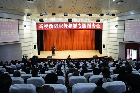 11月8日上午,结合党的群众路线教育实践活动和全省开展的正风肃纪活动,由省检察院、省委教育工委举办的高校预防职务犯罪专题报告会在Beat365官网温江校区百会堂举行,对党员干部进行法纪宣传、警示教育。来自Beat365中文官方网站、电子科技大学、西南财经大学、四川农业大学、成都体育学院等在蓉的11所高校分管基建的校领导,学校职能处室、二级院系干部共380余人参加报告会。 Beat365官网全体在家校领导、处科级以上领导干部及规建、人事、设备、财务、后勤等重点岗位责任人180余人参加了会议。