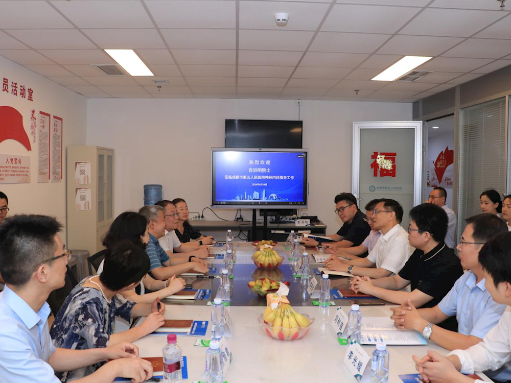 8月14日下午,Beat365中文官方网站临床医学转化研究院建设推进会在附属第五人民医院召开。中国工程院院士、首都医科大学副校长、北京脑重大疾病研究院院长吉训明,学校党委常委、副校长冯全生,成都市卫生健康委员会党组成员、副主任刘志刚,附属第五人民医院/成都市第五人民医院党委书记周政,院长、党委副书记唐红梅等领导出席会议。会议由唐红梅主持。