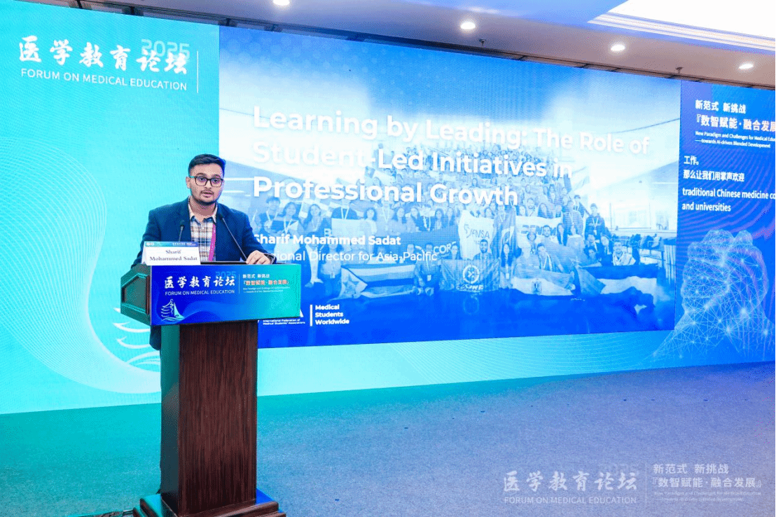 国际医学生协会联合会亚洲太平洋区域主任Sharif Mohammed Sadat指出在医学教育范式转型的背景下,学生主导的主动性是在专业成长中的核心要素。基于IFMSA在亚太地区的实践经验强调学生自主领导力培养可有效培养未来医师的领导力、团队协作能力和创新思维,更能促进医学教育从"被动接受"向"主动探索"转变。