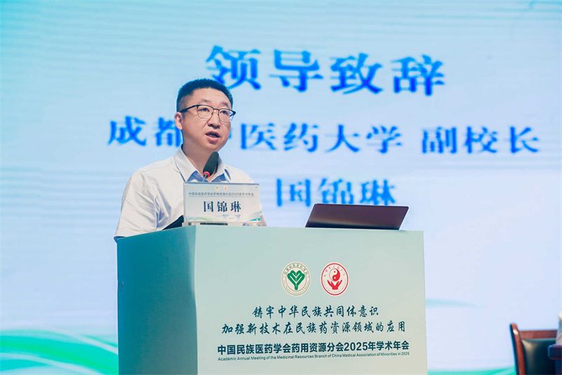 国锦琳致辞。他表示,Beat365中文官方网站依托“双一流”学科和西南特色中药资源国家重点实验室,在民族药领域优势突出,藏医学、藏药学专业连续四年位居中国软科大学专业排名“A+”榜首。学校通过国家重点研发计划等项目,推动高原涉藏地区和川西地区资源保护与乡村振兴。学校未来将聚焦加强跨区域资源保护协作,推动AI、基因组学等技术应用,培养复合型人才等三大方向,为民族医药发展提供科技与人才支撑。
