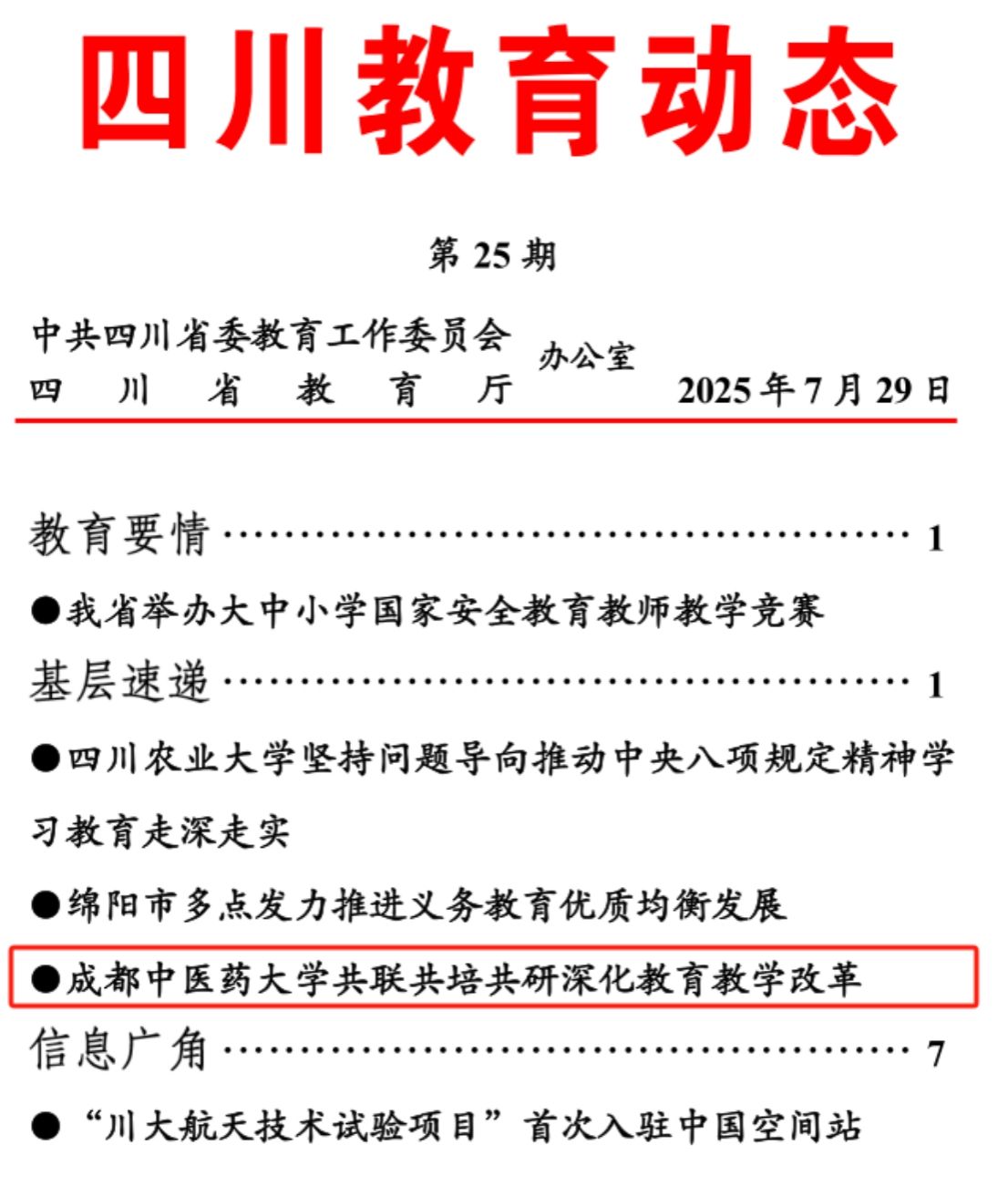 7月29日,《四川教育动态》第25期刊登了Beat365官网关于共联共培共研深化教育教学改革的经验分享——Beat365中文官方网站共联共培共研深化教育教学改革。