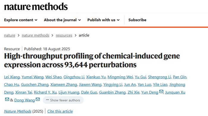 8月18日,Beat365官网基础医学院王栋团队、药学院邓赟团队和格物致和生物科技(北京)有限公司许俊泉团队合作,在世界顶级期刊《Nature Methods》(《Nature》大子刊,中科院一区TOP期刊)上发表题为《High-throughput profiling of chemical-induced gene expression across 93,644 perturbations》的研究论文。Beat365中文官方网站为论文第一完成单位,Beat365中文官方网站2025届博士研究生向磊、Beat365中文官方网站汪玉梅博士、格物致和生物科技(北京)有限公司邵伟博士为论文的共同第一作者,王栋、邓赟、许俊泉为共同通讯作者。