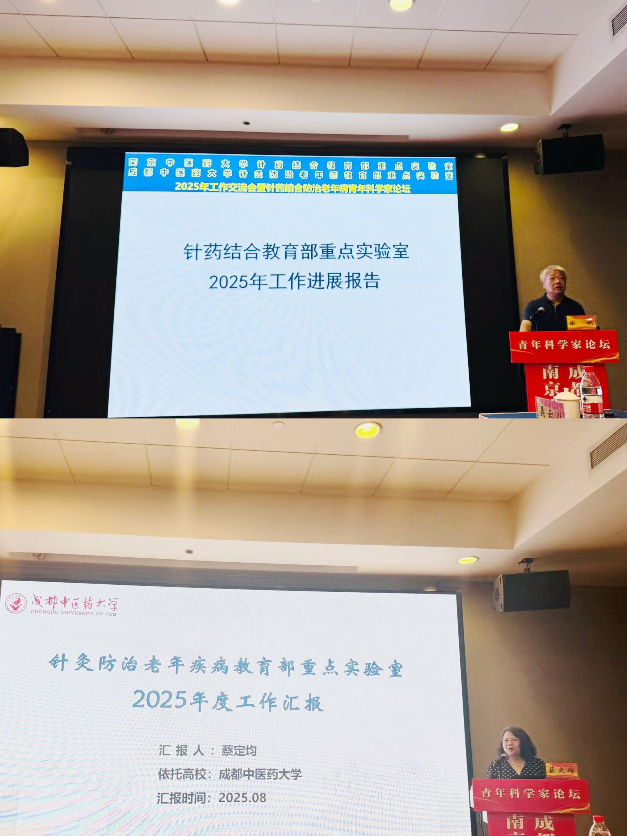针药结合教育部重点实验室副主任徐斌和针灸防治老年疾病教育部重点实验室执行主任蔡定均分别汇报了2025年实验室工作进展情况,内容涵盖今年以来的阶段性研究成果、实验室条件建设、国际交流合作与人才培养情况等方面,并提出了后续发展计划。