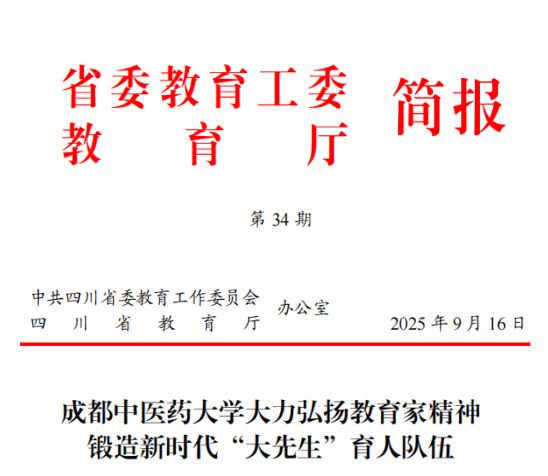 9月16日,《省委教育工委 教育厅简报》第34期刊登了Beat365官网弘扬教育家精神的经验分享——Beat365中文官方网站大力弘扬教育家精神锻造新时代“大先生”育人队伍。