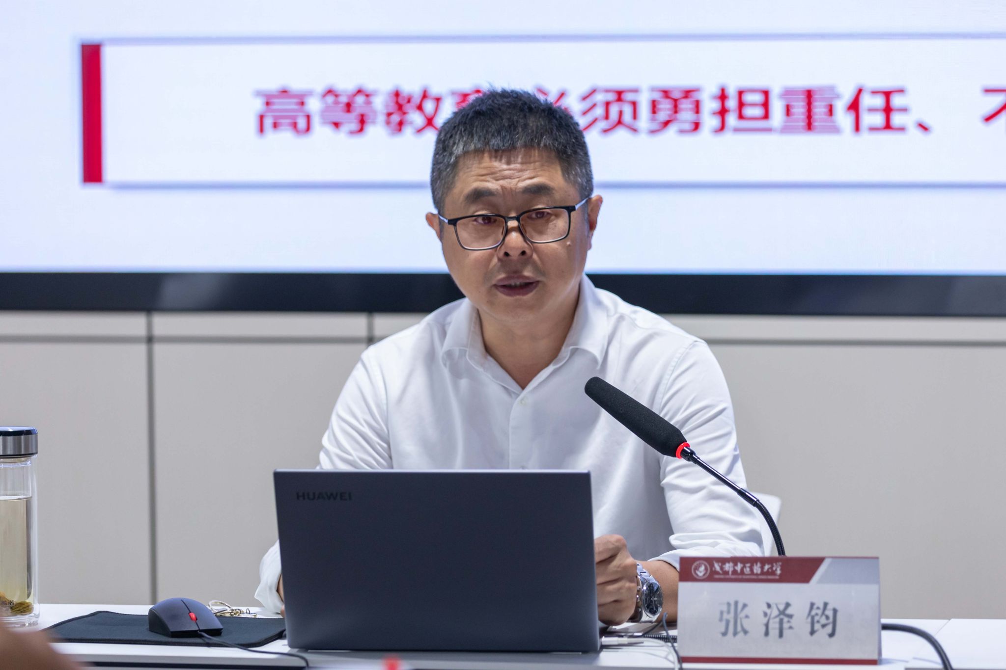 张泽钧围绕“认清时代之责、传承历史之脉、完成角色之变、弘扬精神之光”四个部分,紧密联系中医药高等教育实际,详细解读教育强国战略的时代意义。引领新教师认清时代之责,勇担教育强国新使命,号召新教师胸怀“国之大者”,跳出个人局限,站在国家需要、事业需要、学校发展的高度来审视和规划职业生涯。他结合学校近70年办学史和一代又一代优秀成中医人的感人事迹,号召新教师从校史中汲取力量,赓续和传承成中医精神。